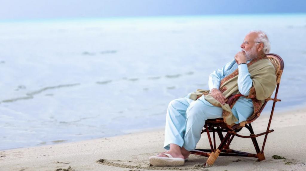 印度总理莫迪晒出自己在拉克沙群岛的照片。(图源:社交媒体)