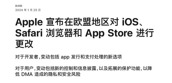 苹果表示更改会在 3 月发布的 iOS 17.4 版本中开始实施。