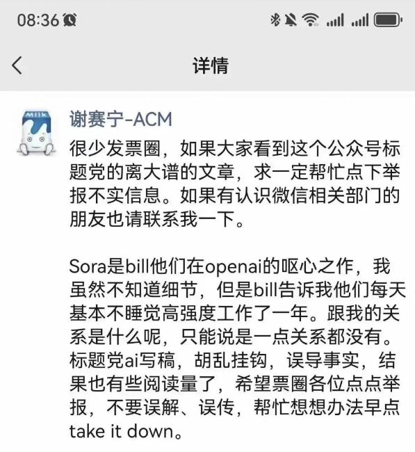 急得谢赛宁急急忙忙出来解释,说 Sora 跟自己没关系,是 OpenAI 内部团队天天 996 熬出来的。