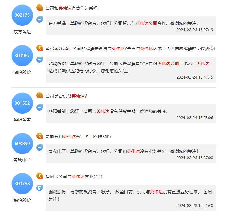 其中最离谱的是一个股民问某农产品公司,他家母鸡生的蛋有没有卖给英伟达,有没有和英伟达达成长期供蛋协议。。。