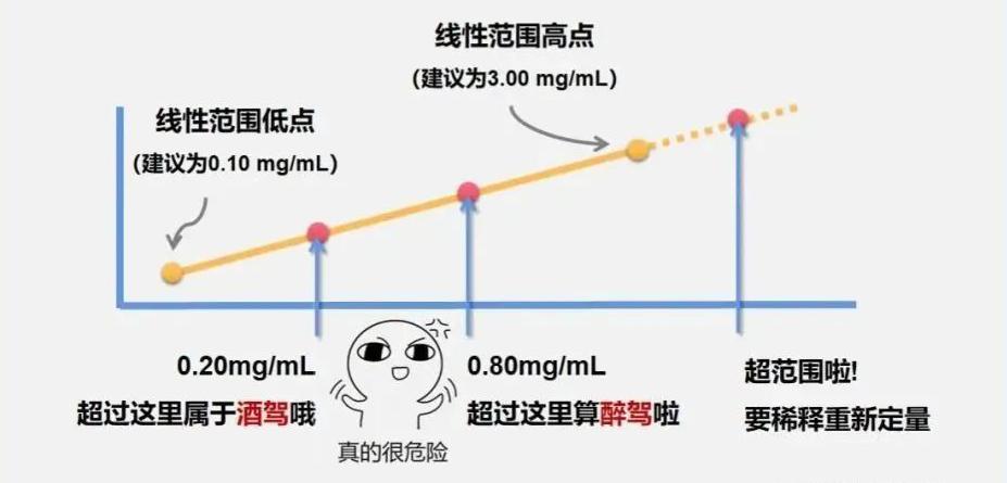 新检验标准以血液中乙醇的含量检验为例:饮酒驾驶为 0.20mg/mL,驾驶员血液中乙醇含量大于或等于 0.80mg/mL 属于醉驾。检验线性范围为 0.1mg/mL~3mg/mL。
