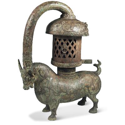 △错银铜牛灯,现收藏于南京博物院。