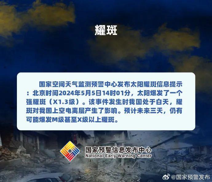 此前,5 月 3 日 10 时 22 分,太阳爆发了一个强耀斑(X1.6 级),对我国上空电离层产生了影响。