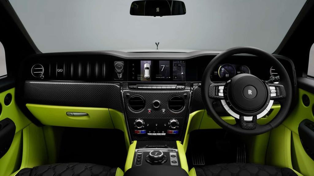 新车内饰部分并没有太大变化。不过,模拟时钟下方现在加入了欢庆女神雕像,这样司机就不会误以为自己开的是一辆普通的宝马 X7 了。Black Badge 版本的仪表台上使用了碳纤维饰件,使用了多达六层漆料,并且每块都经过手工抛光以达到镜面效果,这一工艺足足需要 21 天才能完成。
