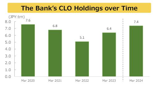 该银行还是抵押贷款债券(CLO)的主要投资者,持有价值 7.4 万亿日元的证券。