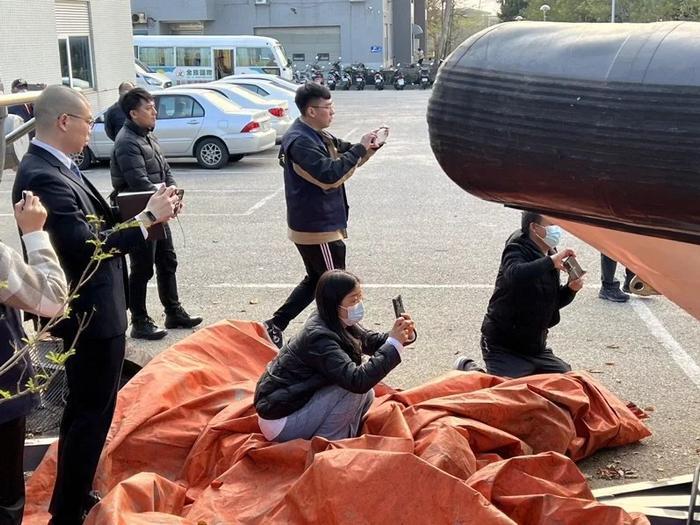 陆方家属日前前往台海巡部门对失事渔船与“海巡艇”进行记录 图片来源:台联合新闻网
