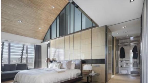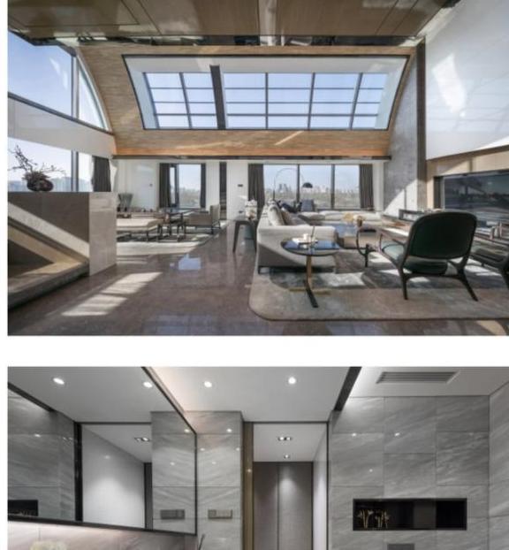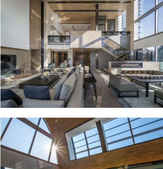 超大程度的采光,和复式结构的客厅,显得非常的宽阔气派,甚至连走廊面积都非常大,客厅还有天窗,到了晚上可以躺在沙发上看月亮,白天在地上看天空,绝对可以称得上是家庭版的总统套房。
