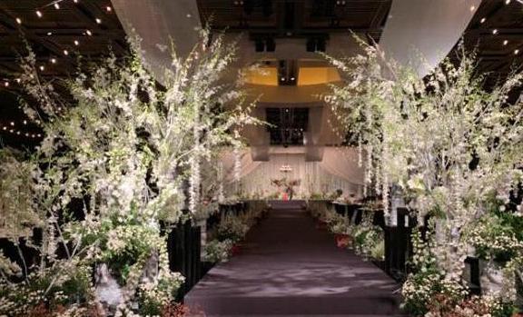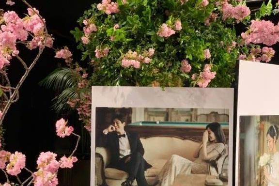 不仅婚礼现场氛围浪漫温馨,连整个布置也显得格外有心。从照片看,婚礼现场几乎被鲜花包围,浪漫至极。