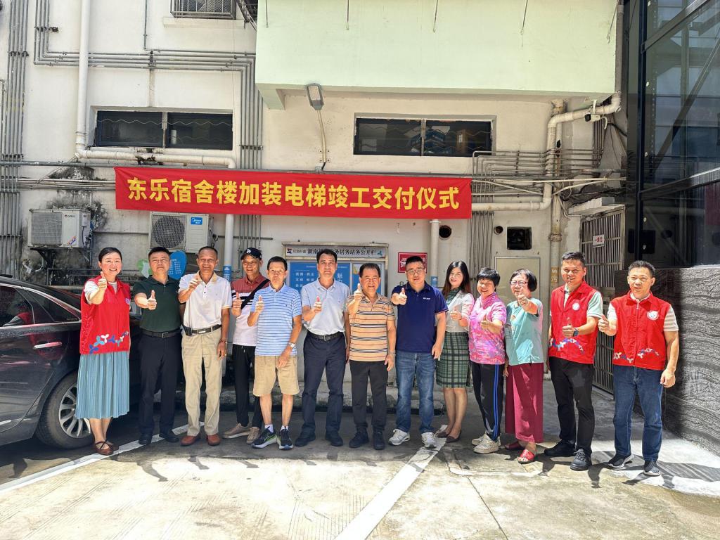 东乐宿舍小区始建于 20 世纪 80 年代,7 层楼高的两个单元现有 24 户、约 170 位居民,其中,老年人、孕妇、婴幼儿等出行不便人群约 30 人,全靠步行上下楼。记者现场了解到,东乐宿舍这两部 " 共享电梯 " 由神州通立电梯(深圳)有限公司出资建设,遵循 " 居民申请、免费安装、有偿使用 ",无论是电梯安装建设还是后期维护费用均不需要业主出钱。
