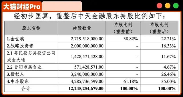 与以往的一些重整案里面,大股东出局的结果相比,罗玉平的损失其实算小的,他旗下的金世旗持股从 38.82%,下降到 22.21%,仍为单一大股东。