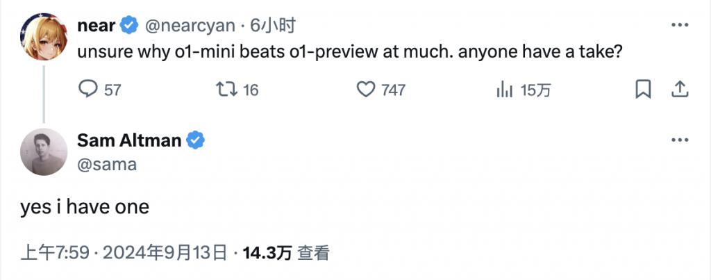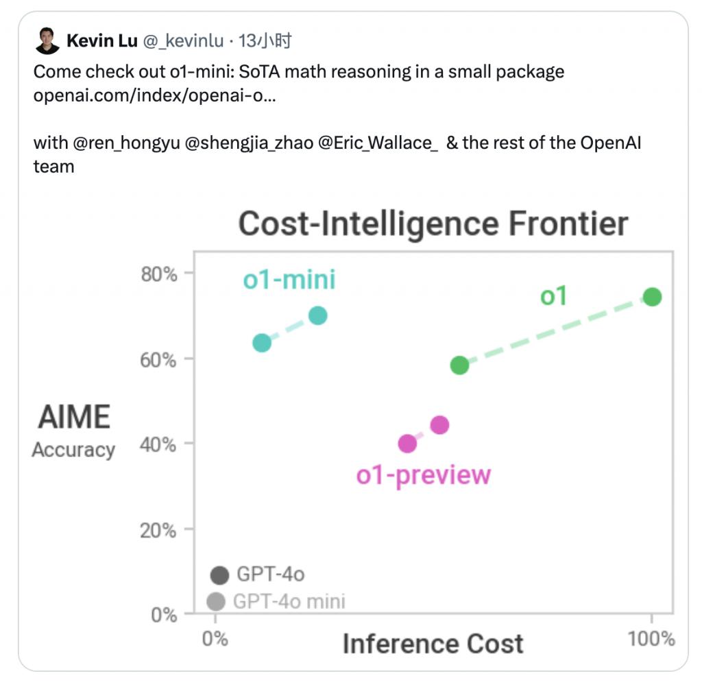 根据 OpenAI 内部员工 Kevin Lu 发布的一则推文来看,mini 的性价比确实比 preview 更高。