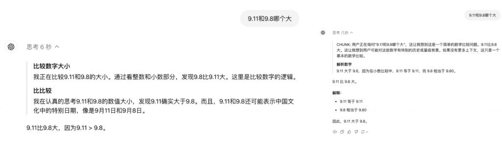 但同时 preview 在思考过程中表示,9.8 和 9.11 有可能指的是日期,所以做不对也许另一原因。