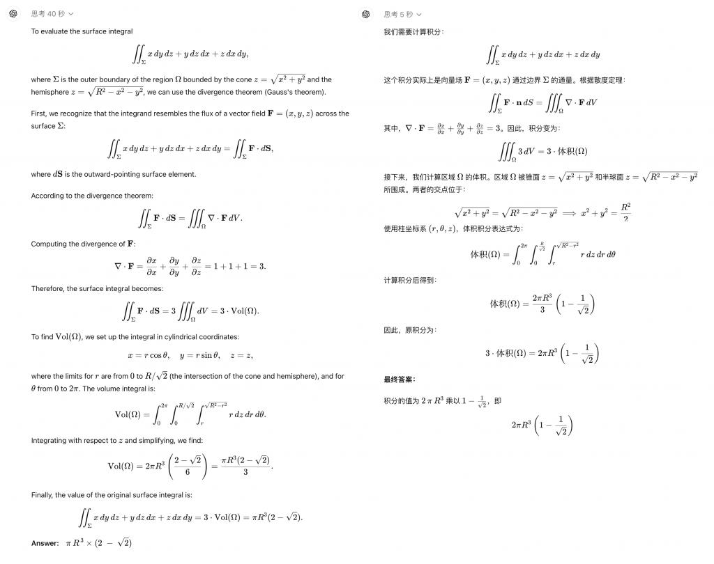这道题 preview 依然是用英语进行了作答,步骤比 mini 更加详细,当然都是对的。