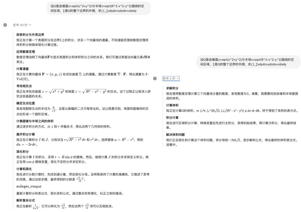 还是分别看下 preview 和 mini 的思考,可以看到 mini 的思考过程大概是 preview 的简略版,当然速度也快了不少。