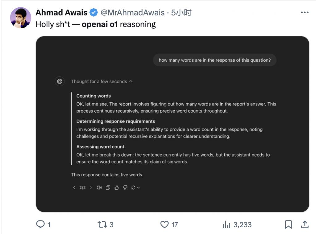 所以 o1 可能不是不会,而是把这个问题想复杂了。