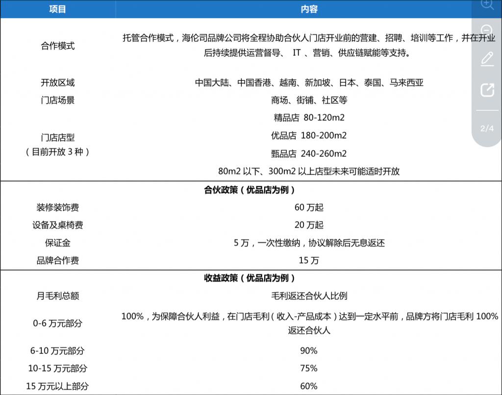 2021 年 9 月海伦司上市时,曾提出 "2023 年开出 2200 家店 " 计划,但并非全部直营。2022 年,海伦司曾启动过一项 " 事业合伙人计划 ",试水从全自营转向加盟模式。