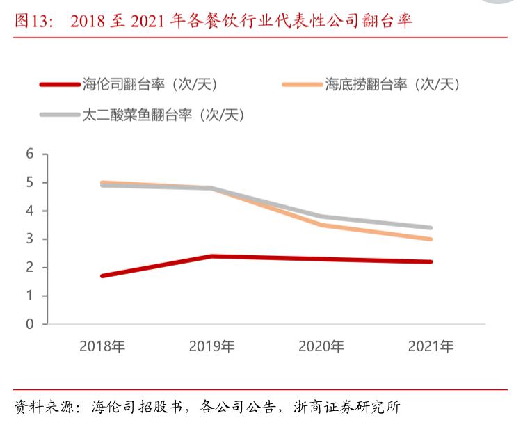 尤其是营业时长限制了翻台率,小酒小菜慢慢聊是行业常态,也不缺乏点一杯酒坐好几个小时的情况。在营业面积有限的情况下,翻台率天然比餐饮、奶茶低。海伦司公告数据显示,2020 年其翻台率为 2.3 次 / 天,低于海底捞的 3.5 次 / 天和太二酸菜鱼的 3.8 次 / 天。