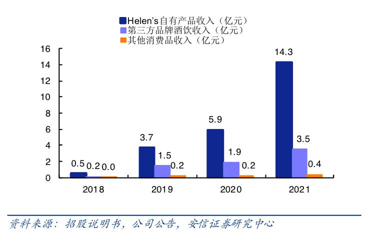 同时,在所售产品中还有相当一部分比重是自有产品,2019/2020/2021 年海伦司自有产品实现收入 3.69 亿元 /5.95 亿元 /14.32 亿元,占当期总收入的 65.36%/72.71%/77.99%。