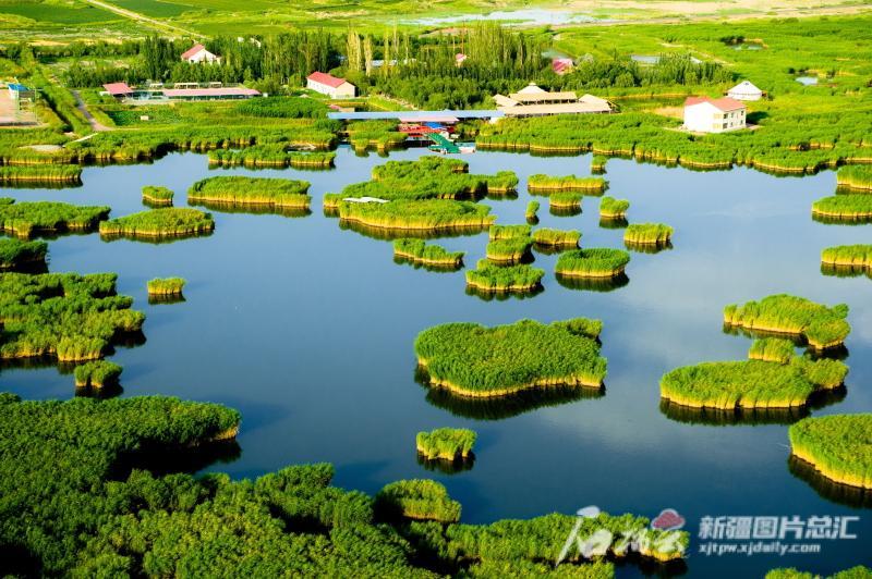 位于焉耆县四十里城子镇相思湖景区,在碧水蓝天映照下,风景唯美如画,翠绿成片的芦苇点缀在湖面上。杨志荣 摄