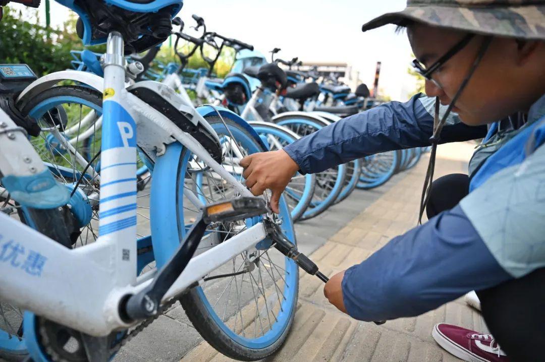运维到底要干啥?“其实,运维也分很多种,包括定点维护人员、车辆运维以及司机。我属于常驻梧桐街地铁站的定点维护运维,还有其他专门负责坏车搜寻的运维,以及专门调度、回收坏旧车辆的司机。”付煜星称,每个工种共同协作、无缝对接,这样才能保证在街道上流通的车辆是好骑的。