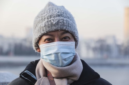 一位漂亮的白山姑娘,在江畔锻炼身体。我打开手机一看,此时此刻浑江区浑江岸边的气温是零下20度。姑娘的眼睫毛上和戴着的帽子上,都染上了冰霜,真是美丽“冻”人。