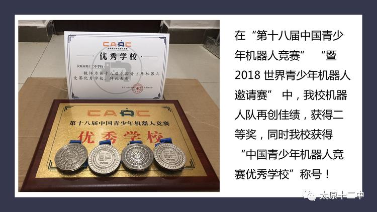 自2016年3月校机器人队成立以来,几乎连年包揽省、市前三名,并在全国、世界级机器人竞赛中多次获奖。