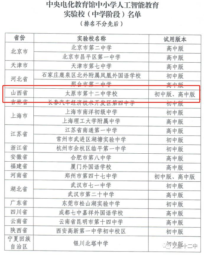 太原十二中开设人工智能实验班