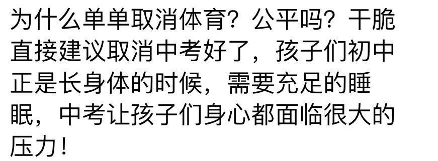 说真的,这让我挺震惊的!喊“取消中考体育”还能理解,喊“取消中考”就太难以理喻了。