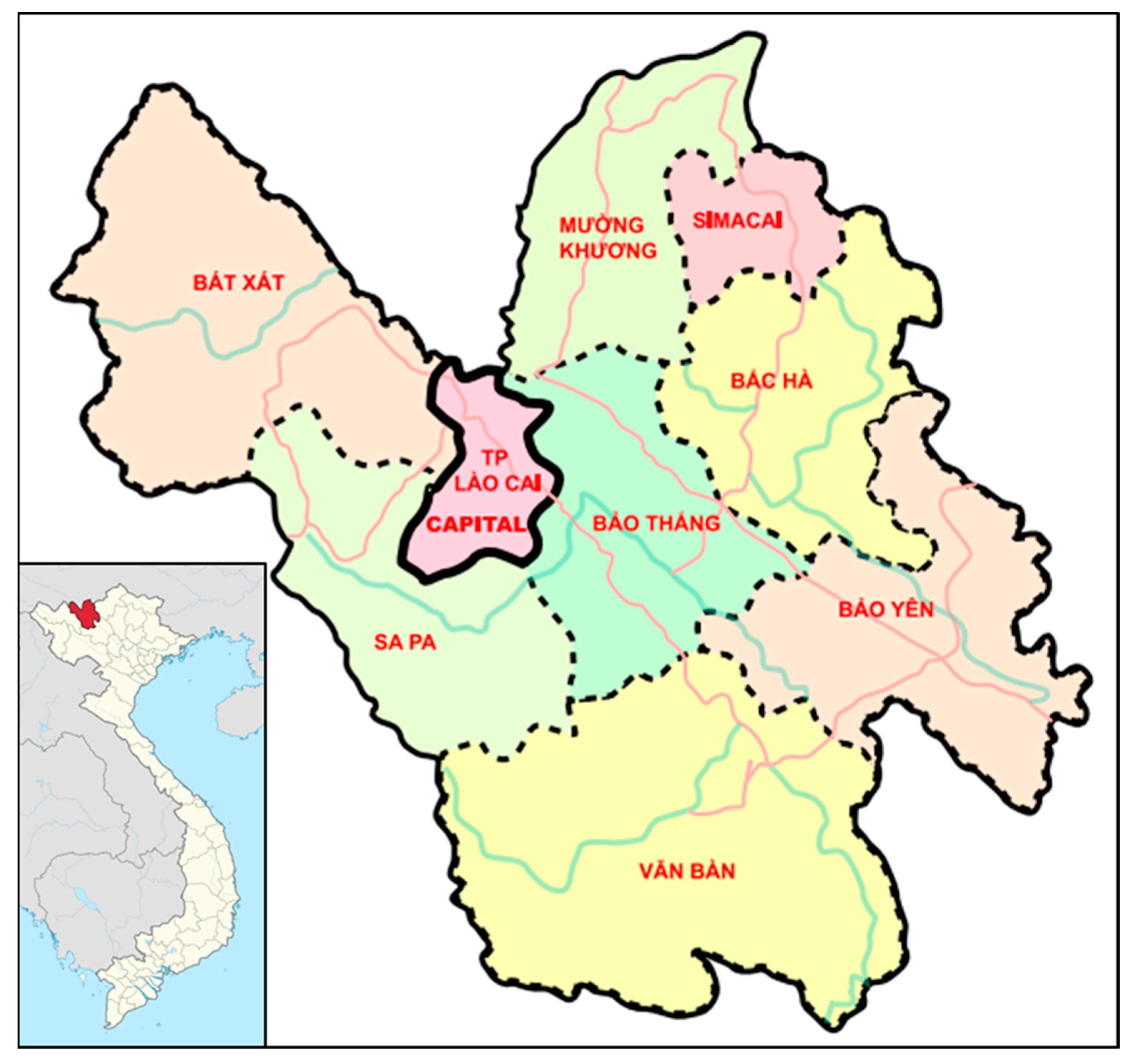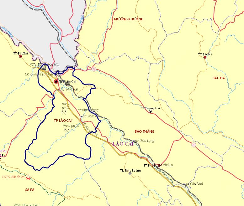 下面是越南老街省的地方,图中粉色的地方就是老街市。
