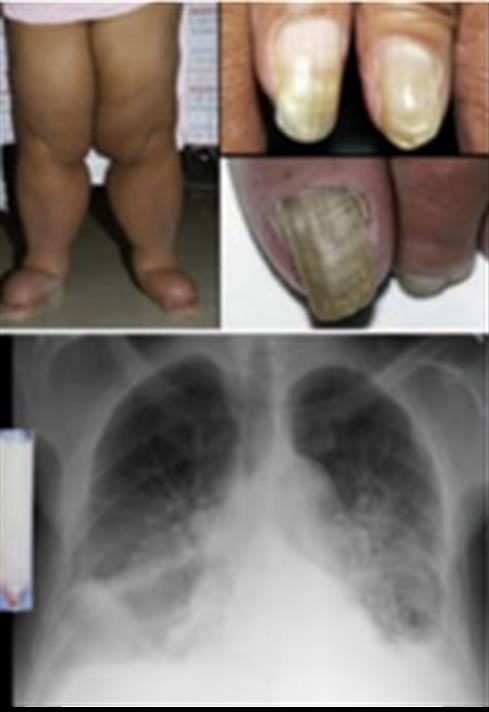 图2:黄甲综合征伴支气管扩张和淋巴水肿(图源参考文献)