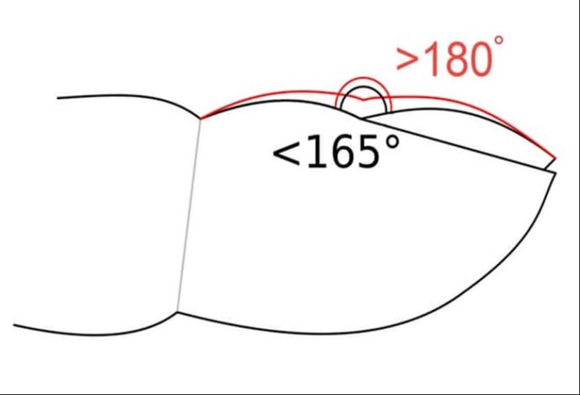 图1:近端甲皱襞与甲板之间的角度(Lovibond角)(图源参考文献)