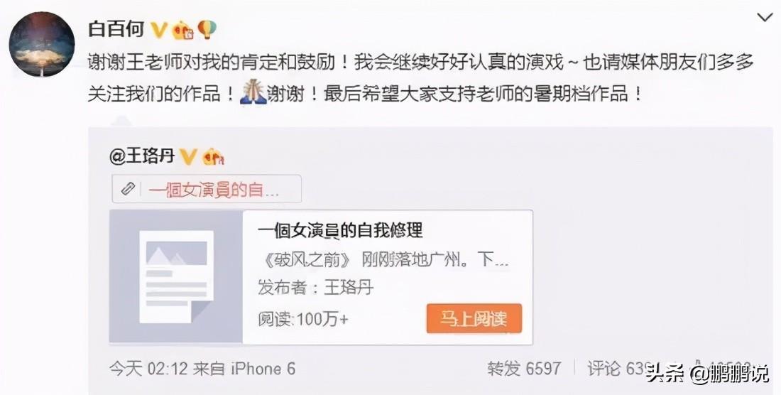 随着战事的升级,是王珞丹首先发声试图化解矛盾,她写了一篇《一个女演员的自我修理》,回应了关于炒作一事。随后白百何还大方地转发了该条微博。