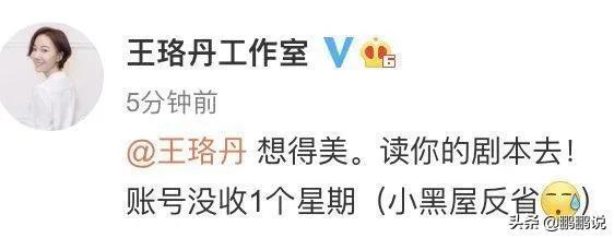 不过很快的,王珞丹工作室便对此作了回应,“想得美,读你的剧本去!账号没收1个星期(小黑屋反省)”,直接让这场闹剧收尾。