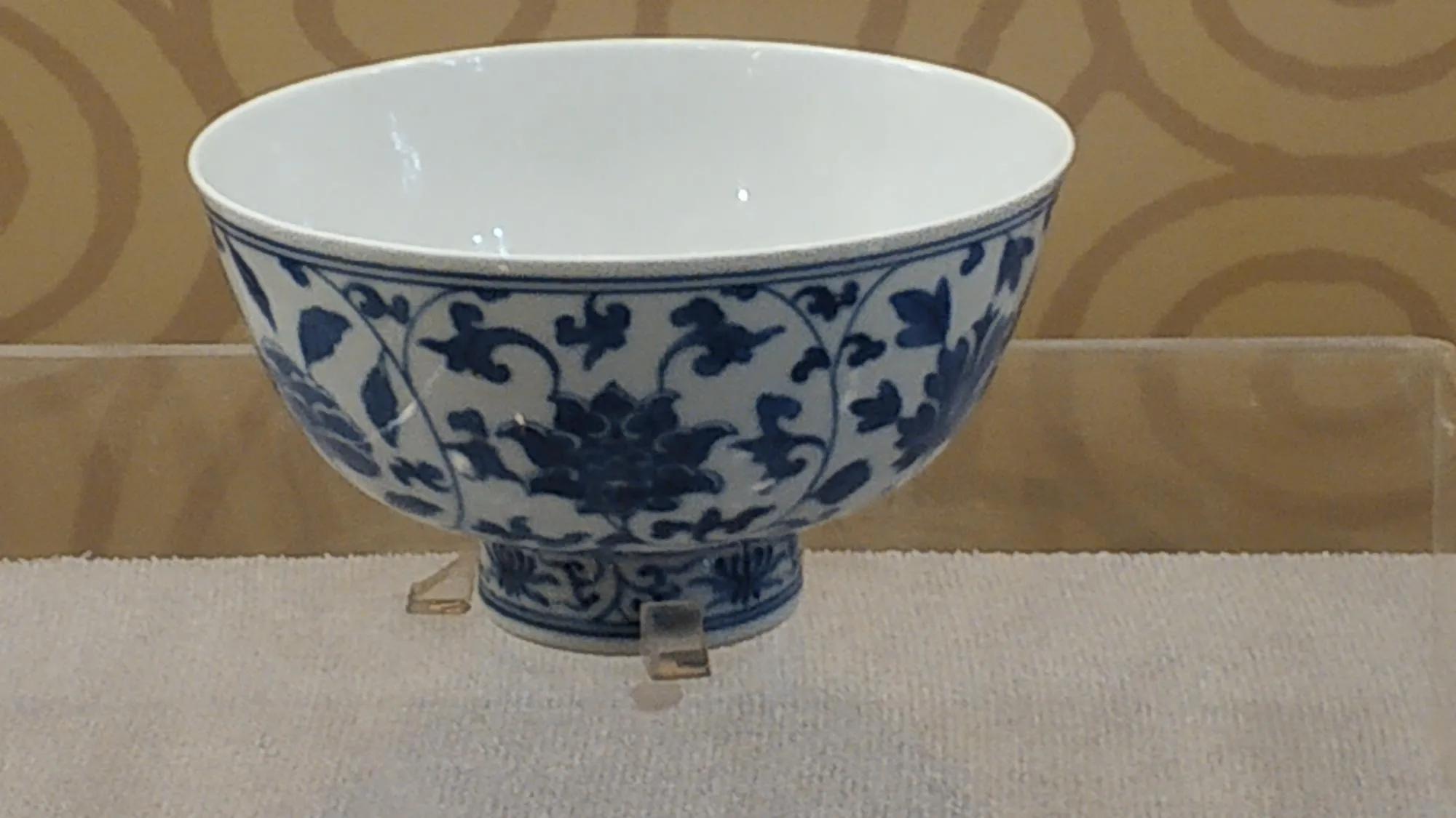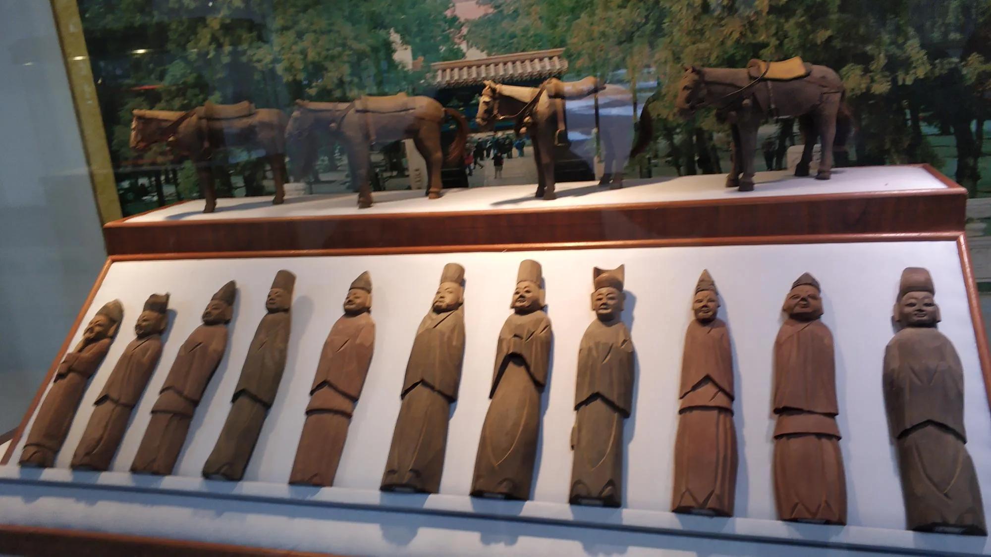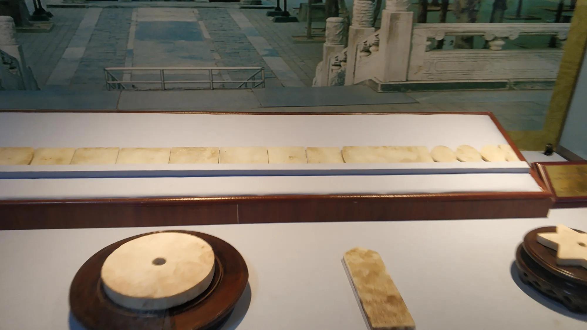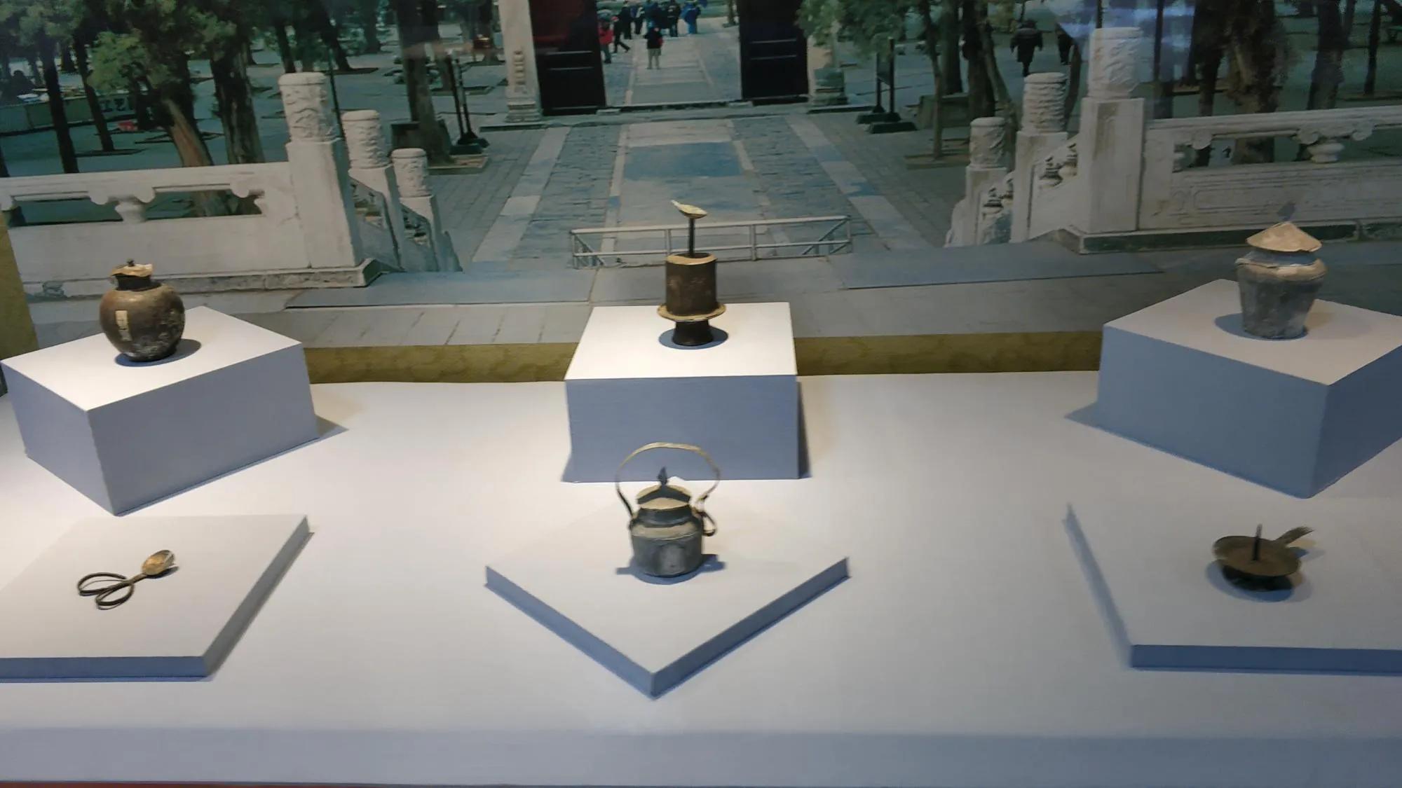 下来后左右两侧都是展览文物的展厅还有电视播放定陵挖掘时的实际情景。