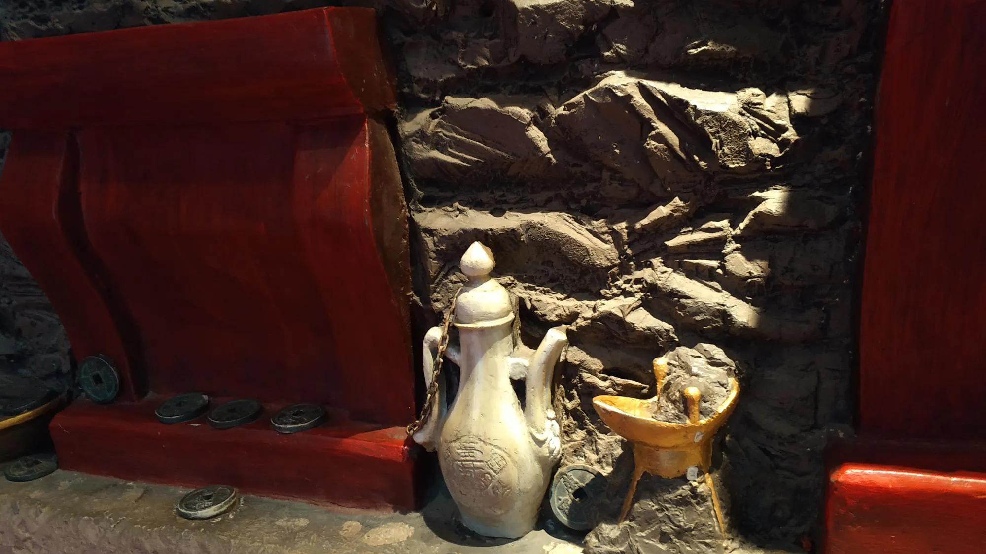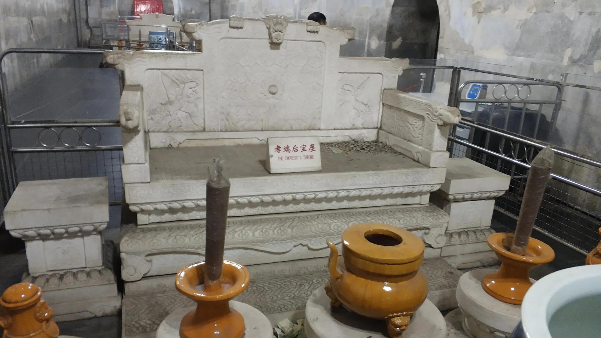 进入左配殿,定陵地宫中的中殿有左右两座配殿,殿中各有一个棺床,却没放棺材,也没放其他东西,这是为什么呢?有关专家推测,两个配殿本来是为两个皇后预备的,但是皇后的棺椁太大,进配殿的通道太窄,进不去,或是入葬时匆忙混乱,未来得及运进去,就把两个皇后的棺椁跟皇帝的棺椁放到了一处,这也算定陵的一大传奇吧!
