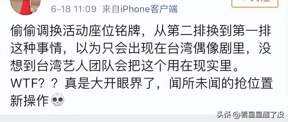 但是很快就有一位博主发文,称一名台湾艺人团队偷偷将座位从第二排换到了第一排,