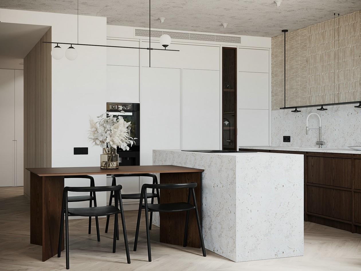 使用木质贴面制作对称形状,同时增强空间的简单自然感,还可以将的门巧妙地嵌入中间,以保持空间感。