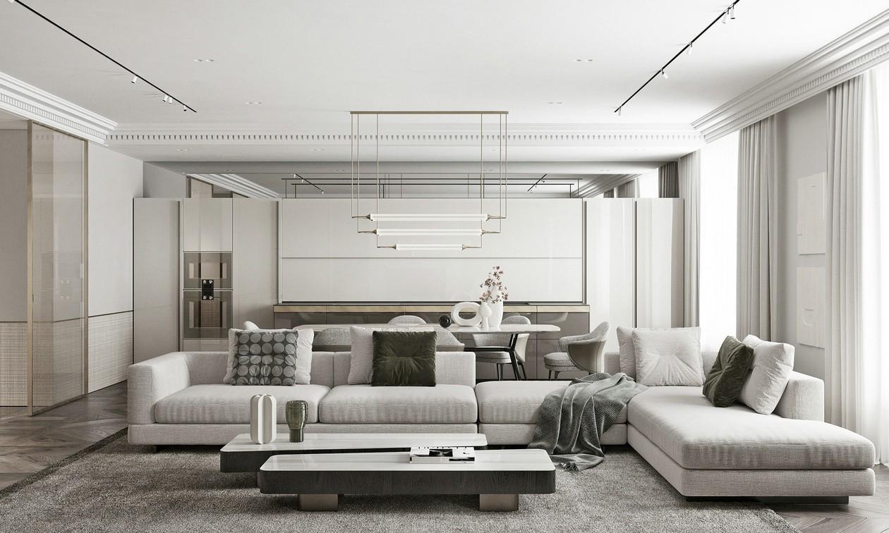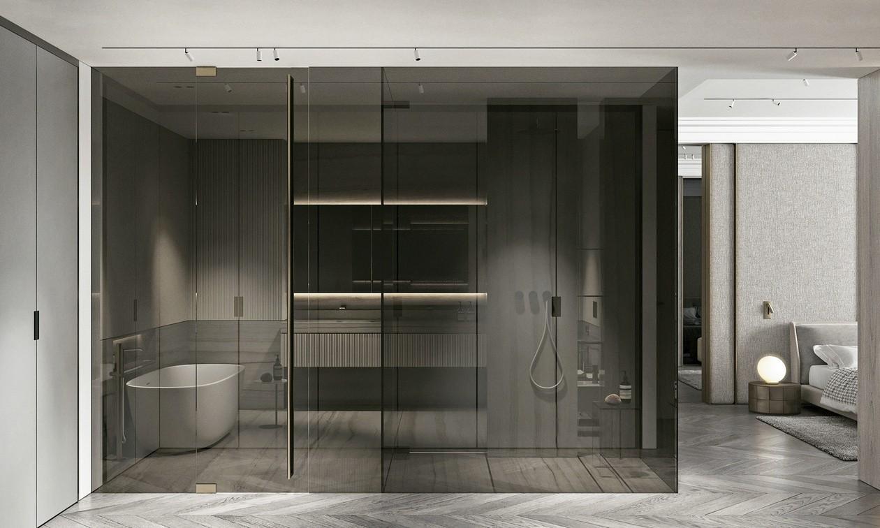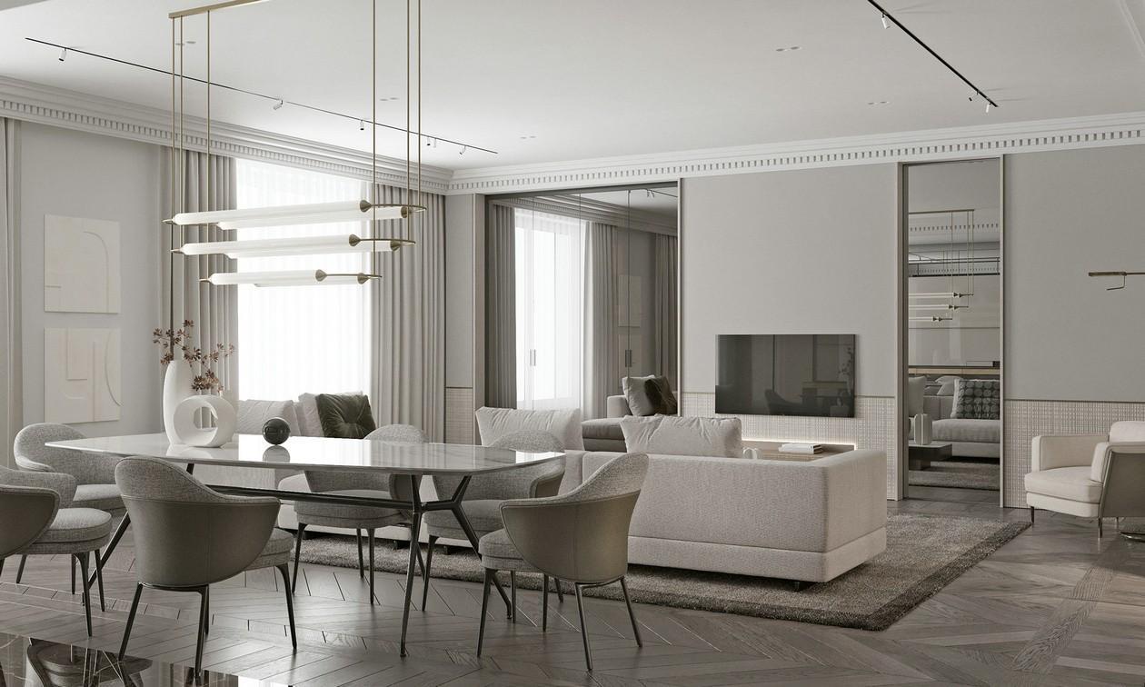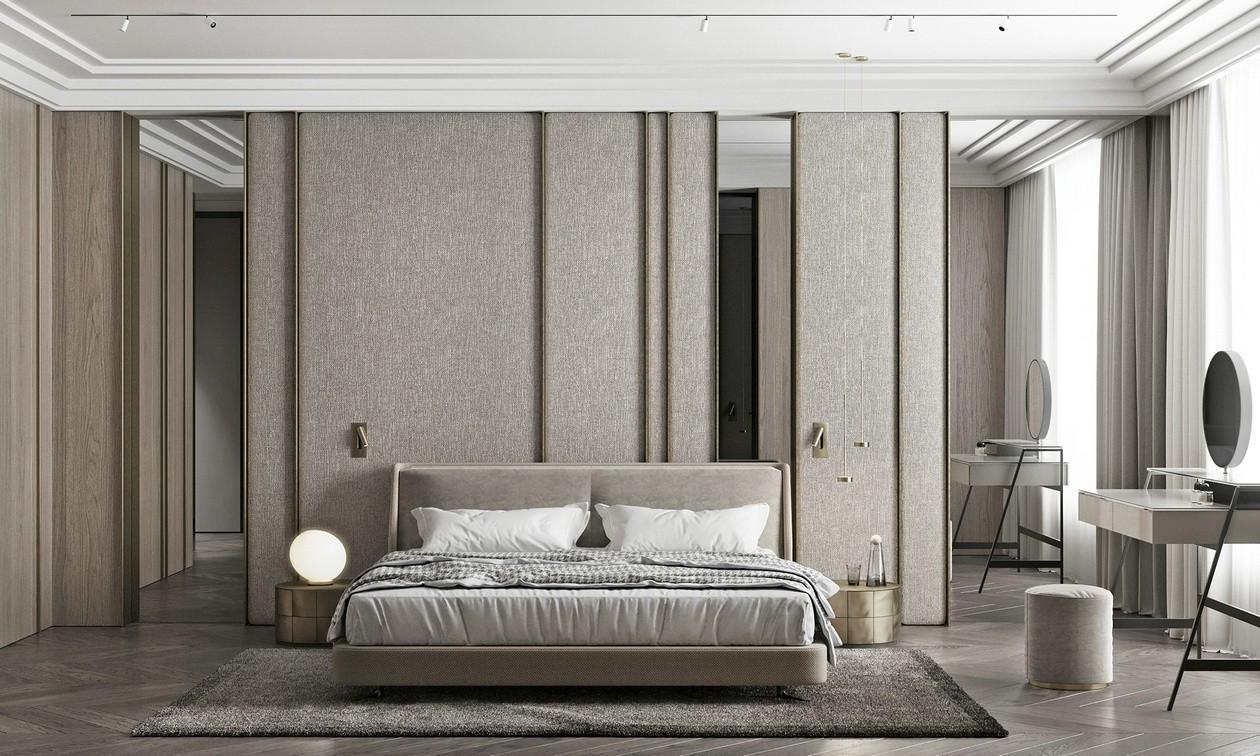 隐形门的设计是一种非常巧妙的补救设计措施,用于在背景墙上开门的公寓类型。在背景墙的门洞上安装了隐形门后,整体空间感非常完整大方。