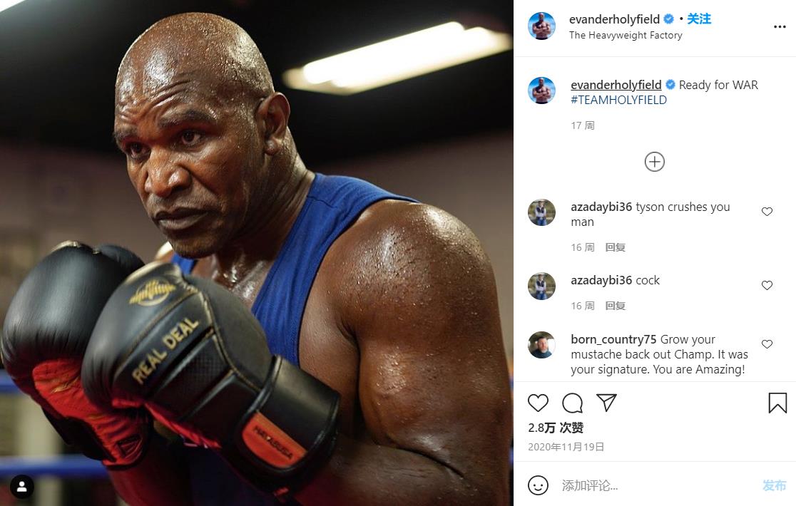 不过对于这个传闻,泰森亲自在社交平台上做出辟谣,并表示霍利菲尔德是个谦逊的人,“我为了5月29日的对决,早就做好了充足的准备,但我不明白谈判破裂的传闻是如何产生的。”泰森此言一出,迅速有媒体跟进,双方的三番战将与5月29日,在迈阿密硬岩体育场打响。