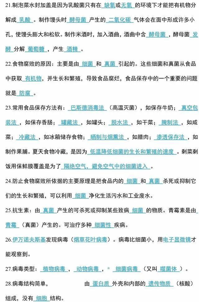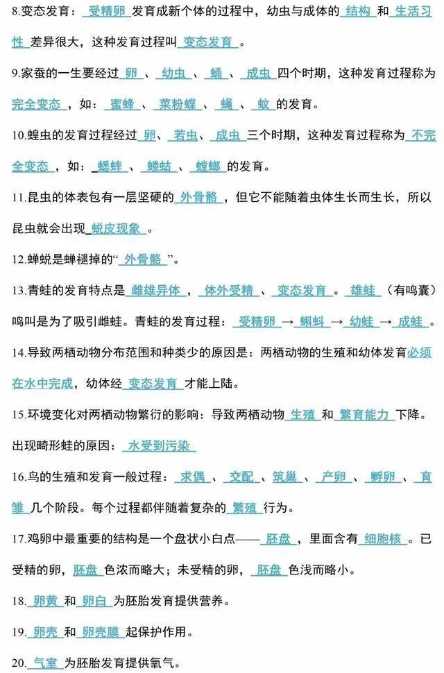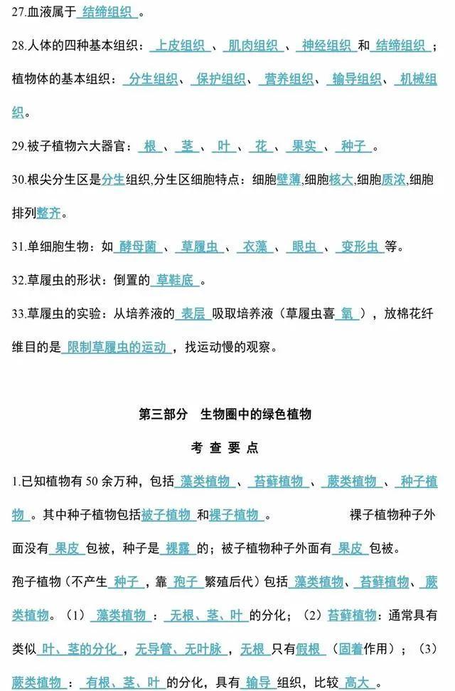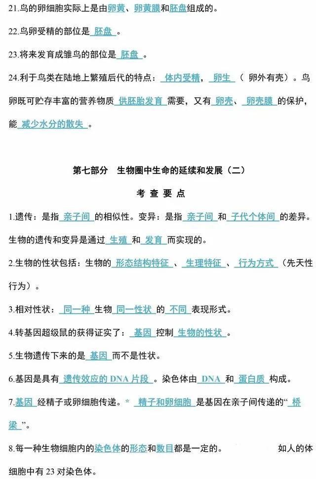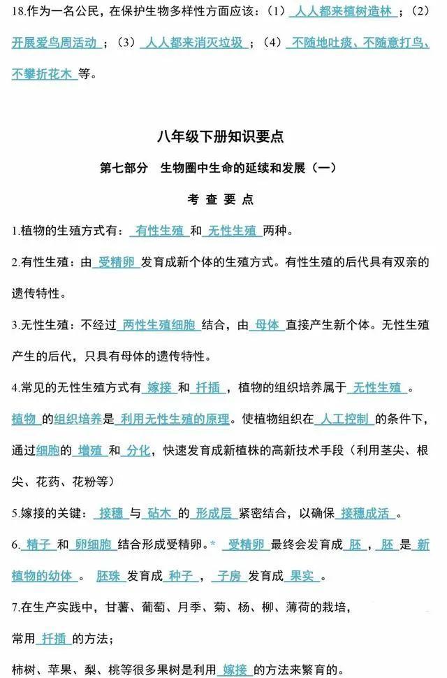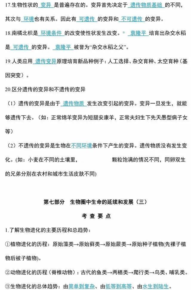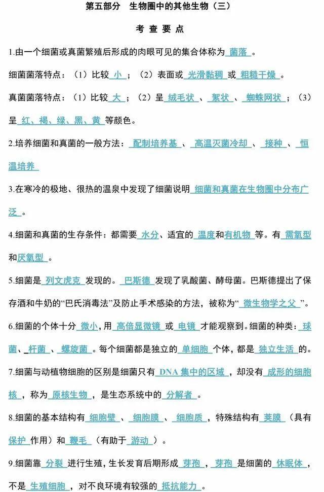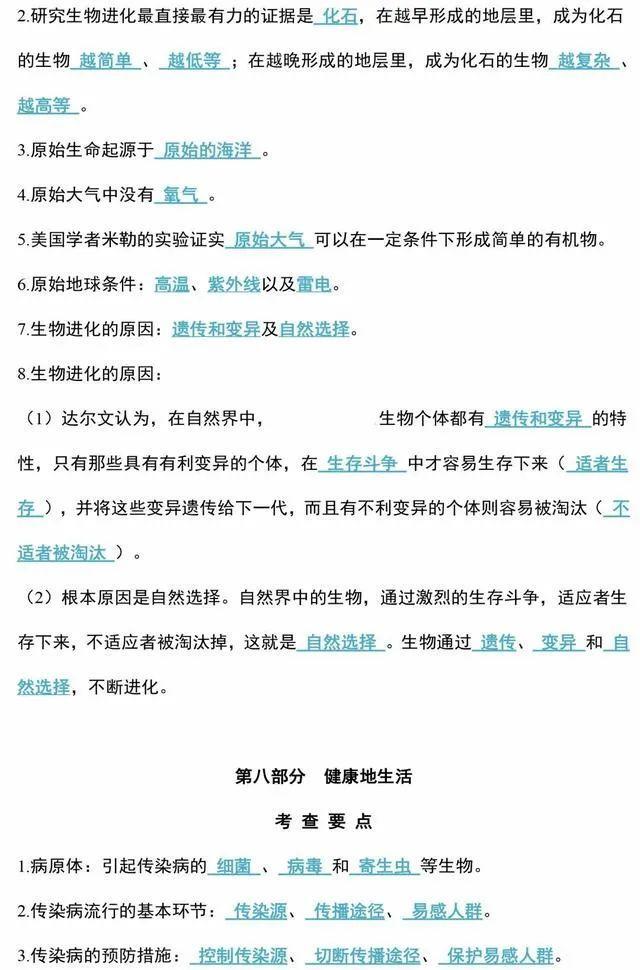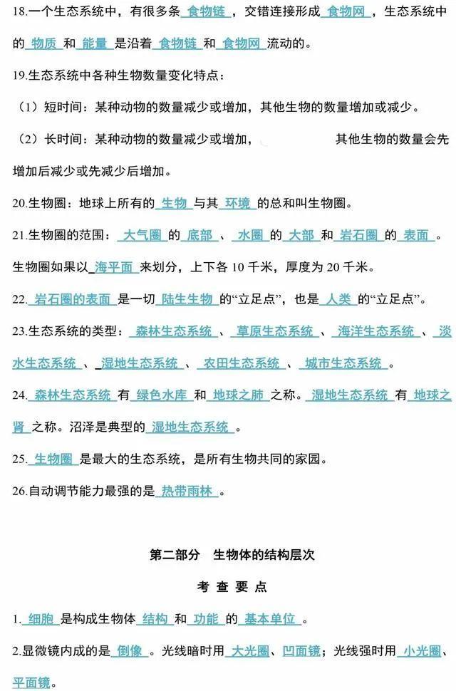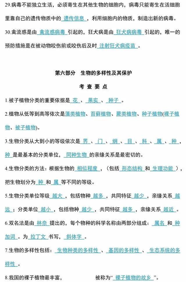 初中生物会考知识点和知识要点最全汇总