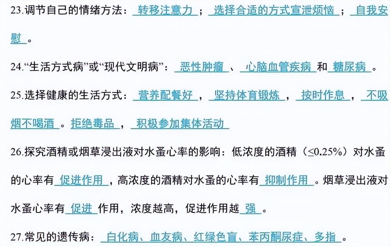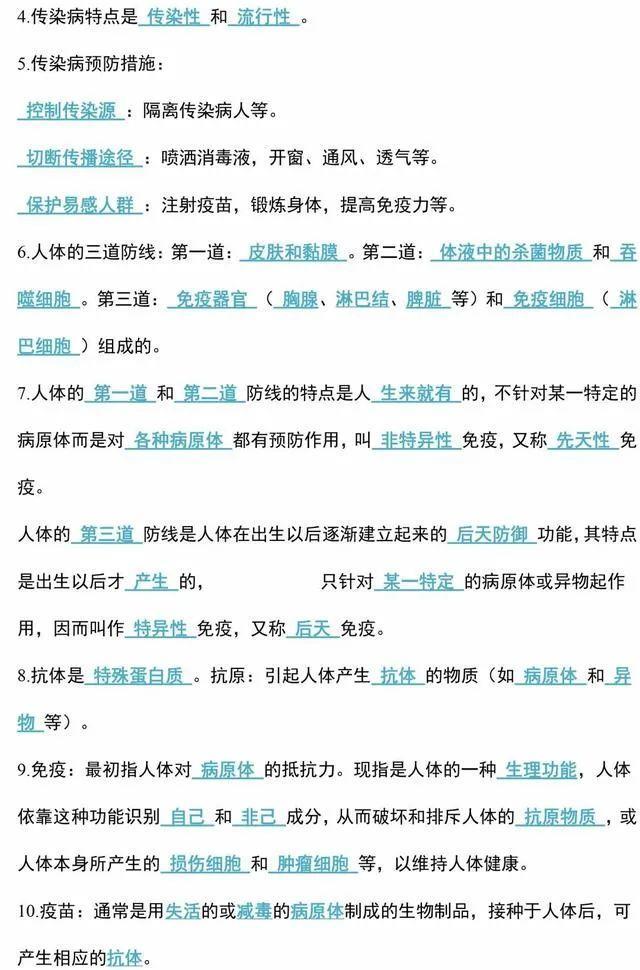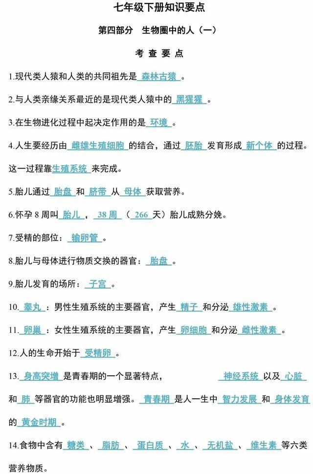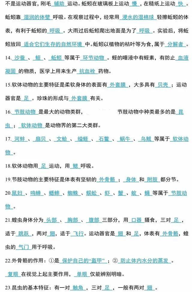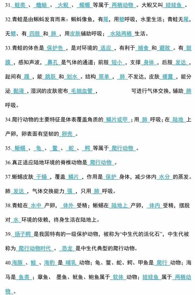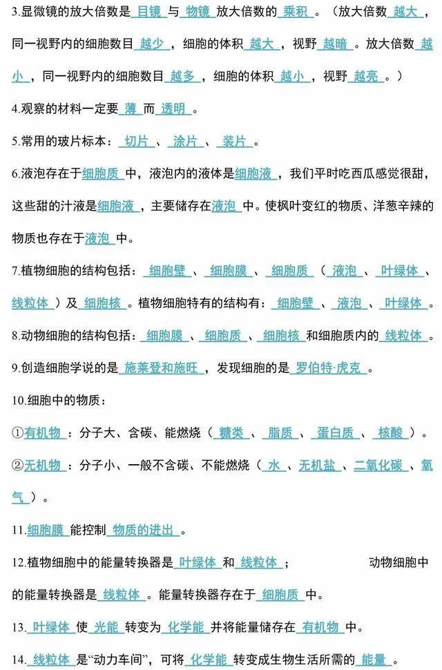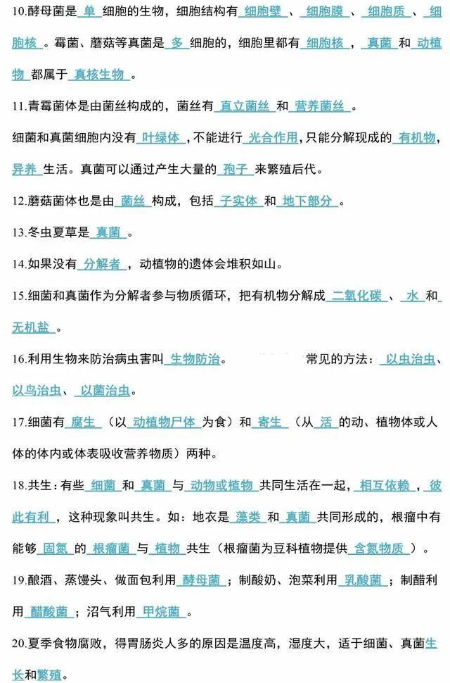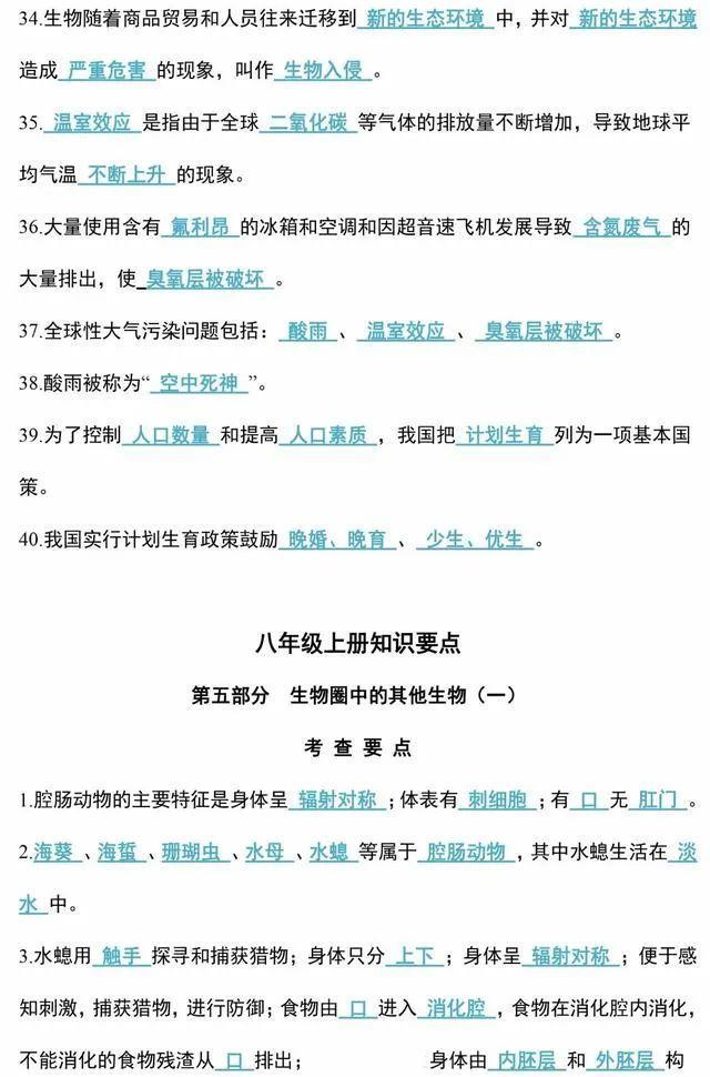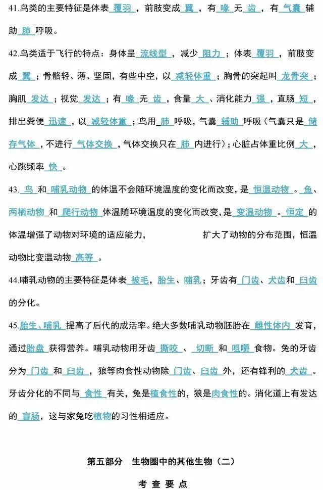 初中生物会考知识点和知识要点最全汇总