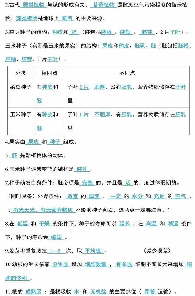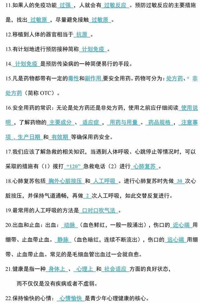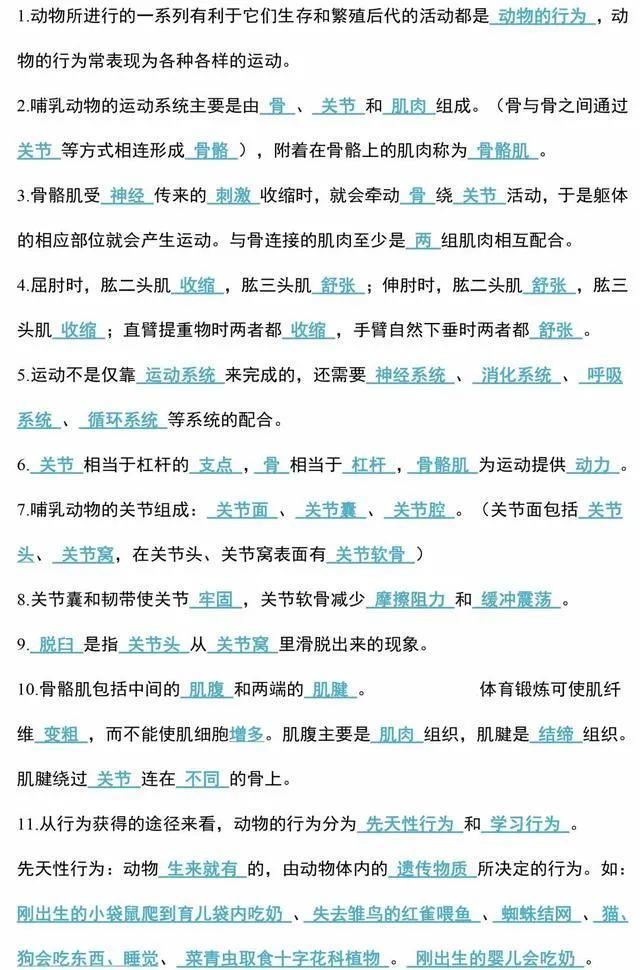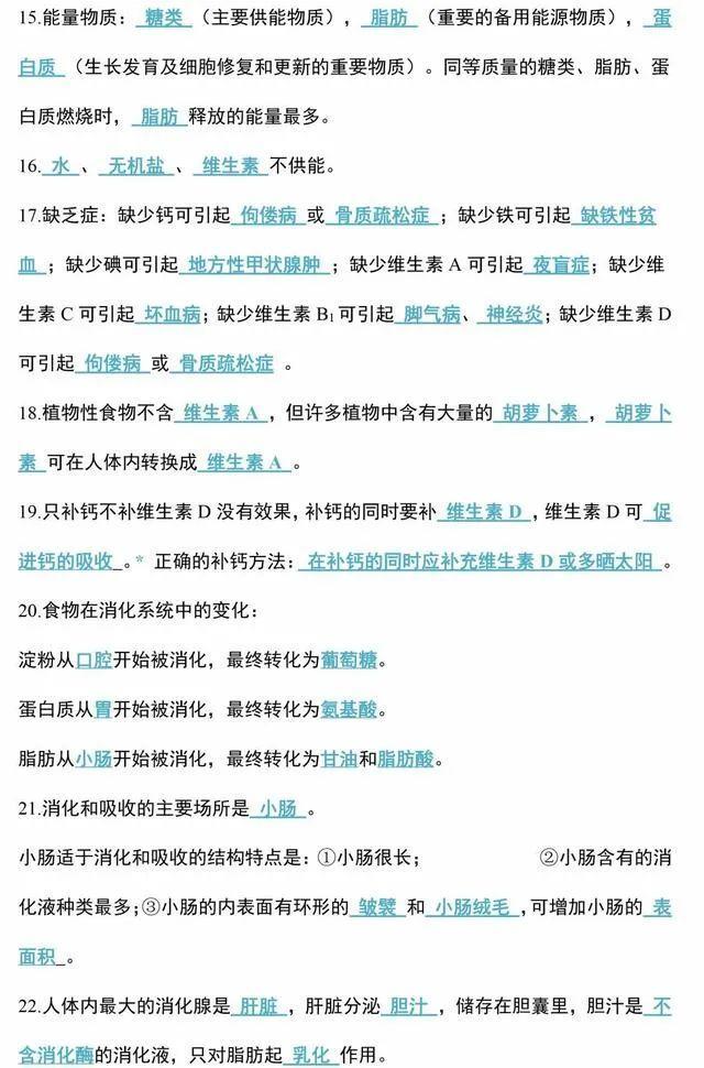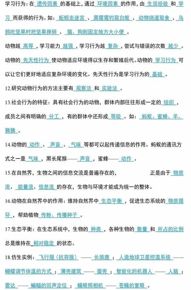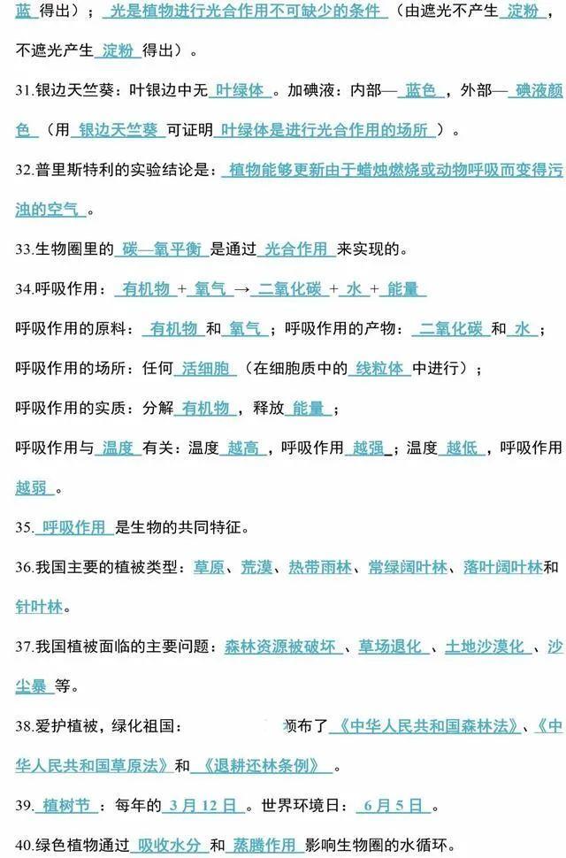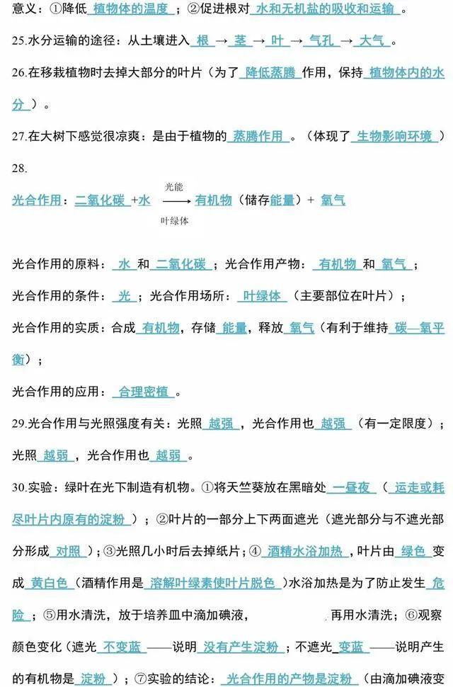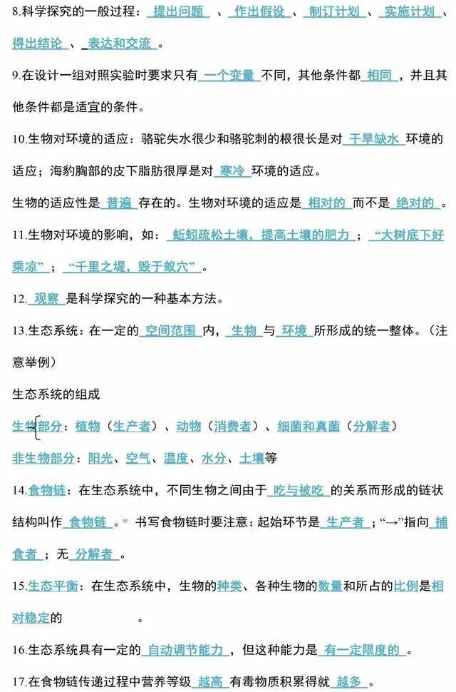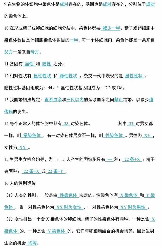 初中生物会考知识点和知识要点最全汇总