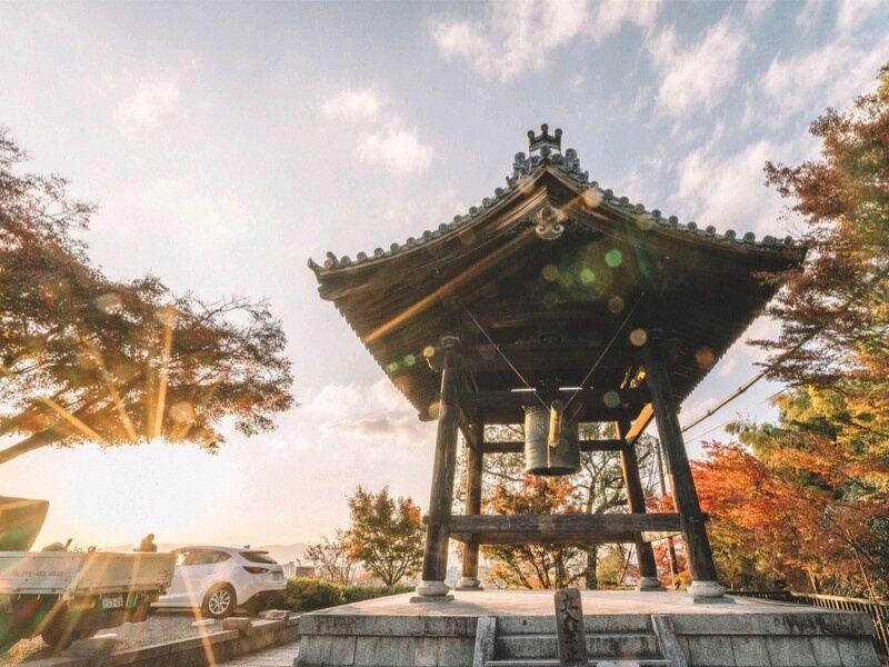 清水寺坐落在音羽山的半山腰,巧借山景,春天樱花烂漫,夏日绿意浓浓,秋季枫叶璀璨,寒冬古意森森。景色随季节变化,不变的是令人折服的美丽。清水寺位于京都东部音羽山的山腰,始建于778年,是京都最古老的寺院,曾数次被烧毁并重建,后于1994年被列入世界文化遗产名录。本堂前悬空的清水舞台是日本国宝级文物,四周绿树环抱,春季时樱花烂漫,是京都的赏樱名所之一,秋季时红枫飒爽,又是赏枫胜地。
