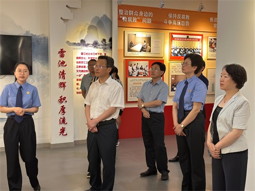 6月7日上午,安徽省安庆市人大常委会副主任程志翔一行深入望江县人民检察院调研工作,参观该院廉洁文化教育基地和“望未来”未成年人法治教育基地,市纪委副书记张帆、市人大常委会监察和司法工委主任朱小红参加,县纪委书记黄锋、县检察院检察长陈琳陪同调研。