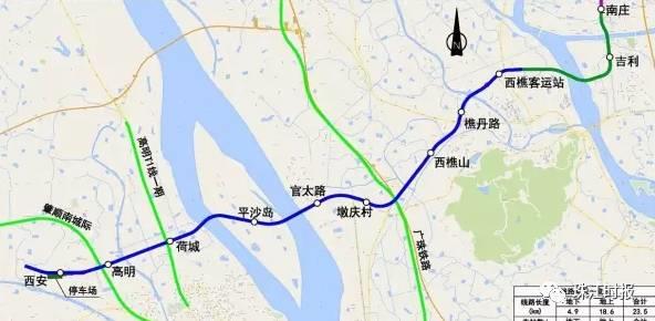 具体走向:西安站➔丽江路➔西江大道➔平沙岛规划路➔北社大街➔樵高路➔崇民路➔西樵镇规划路➔吉利大道➔龙津路➔紫洞大道➔南庄站。