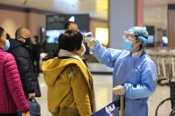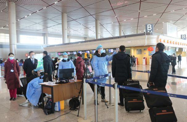 哈尔滨太平国际机场对出港旅客进行测温