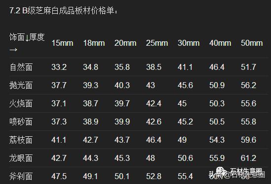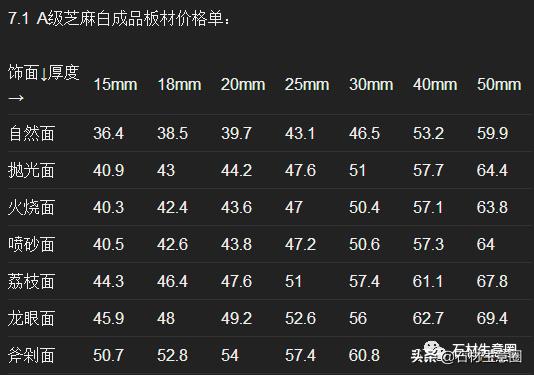 8.1 芝麻白A级条石单价是1150元/m³。(碑石、栏杆)(不亏料尺寸)