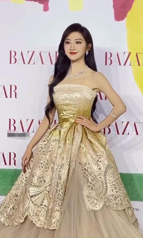 接下来的这位也是红毯上的常客——景甜,被大家称为“人间富贵花”。不过景甜这次倒是没有过于秀身材,反而选择了比较大方端庄的金色抹胸裙,裙摆处是同色系的薄纱,宛如城堡当中走出来的公主一般。
