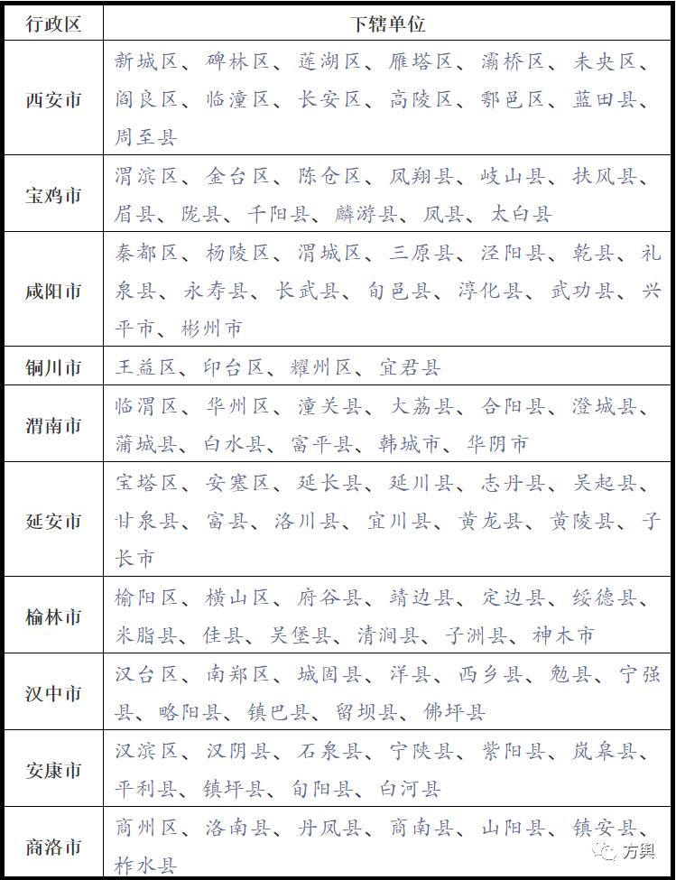陕西省县级以上行政区划名录