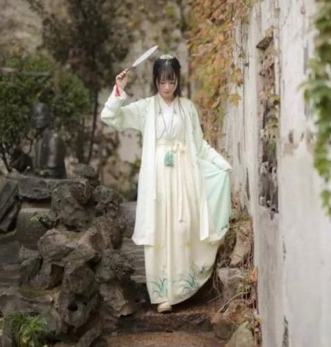 摩羯座的专属汉服是以青色为主,领口采用硬料,让人看上去有一种女王的风范,就好像王后游玩皇宫花园的感觉,可以让不少男生心动呢。